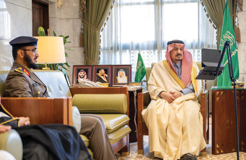 جاء ذلك خلال استقبال سموه بمكتبه بقصر الحكم امس مدير إدارة الدفاع المدني بالمنطقة اللواء الدكتور محمد بن عبدالعزيز أبو عباة وعددًا من منسوبي الإدارة.