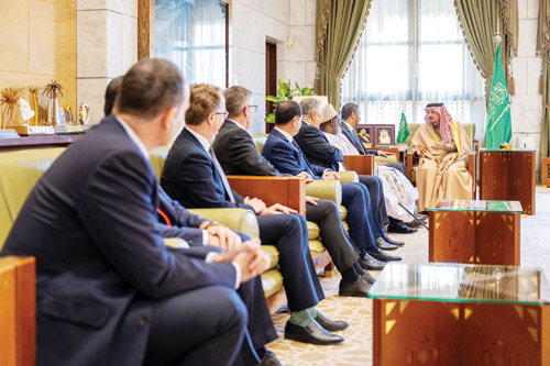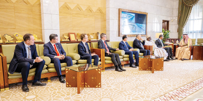 نيابة عن خادم الحرمين الشريفين الملك سلمان بن عبدالعزيز آل سعود، وصاحب السمو الملكي الأمير محمد بن سلمان بن عبدالعزيز آل سعود ولي العهد رئيس مجلس الوزراء -حفظهما الله-، استقبل صاحب السمو الملكي الأمير فيصل بن بندر بن عبدالعزيز أمير منطقة الرياض، في مكتبه بقصر الحكم أمس، عميد السلك الدبلوماسي سفير جمهورية جيبوتي لدى المملكة ضياء الدين بامخرمة، ورؤساء المجموعات الجغرافية المعتمدين لدى المملكة.