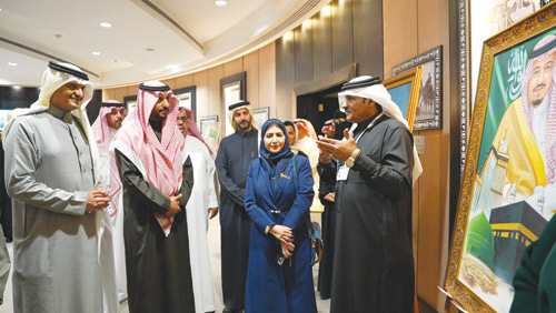 ويتضمن المعرض المقام في فرع الخدمات وقاعات الاطلاع بطريق خريص بمدينة الرياض 20 لوحة فنية تشكيلية رسمت بمختلف اتجاهات الفن التشكيلي ومدارسه الواقعية والرمزية والطبيعية استلهمت العلم السعودي ورموزه، كما استلهمت ما تضمه المملكة من مشاهد وأماكن تراثية ومعاصرة، حيث قدّمها الفنانون برؤى إبداعية تعكس مشاعر الانتماء والحس الوطني، وتبرز الاعتزاز بالهوية والتراث السعودي، من جهة، وتبين جماليات الفن التشكيلي في قراءة الواقع عبر الألوان والظلال والأضواء، وتوظيف الكتل اللونية في إبداع عناصر الحياة بالمملكة، وقراءة جماليات الطبيعة والواقع من جهة ثانية. ويأتي هذا المعرض في إطار حرص المكتبة على تفعيل المناسبات الوطنية وتعزيز التعاون الثقافي المشترك، وإبراز دور الفنون التشكيلية في التعبير عن الهوية الوطنية ويستقبل المعرض زوّاره خلال يومي 10 و11 مارس، في فرع الخدمات وقاعات الاطلاع بخريص، وذلك من الساعة 9 مساءً حتى 1 بعد منتصف الليل.