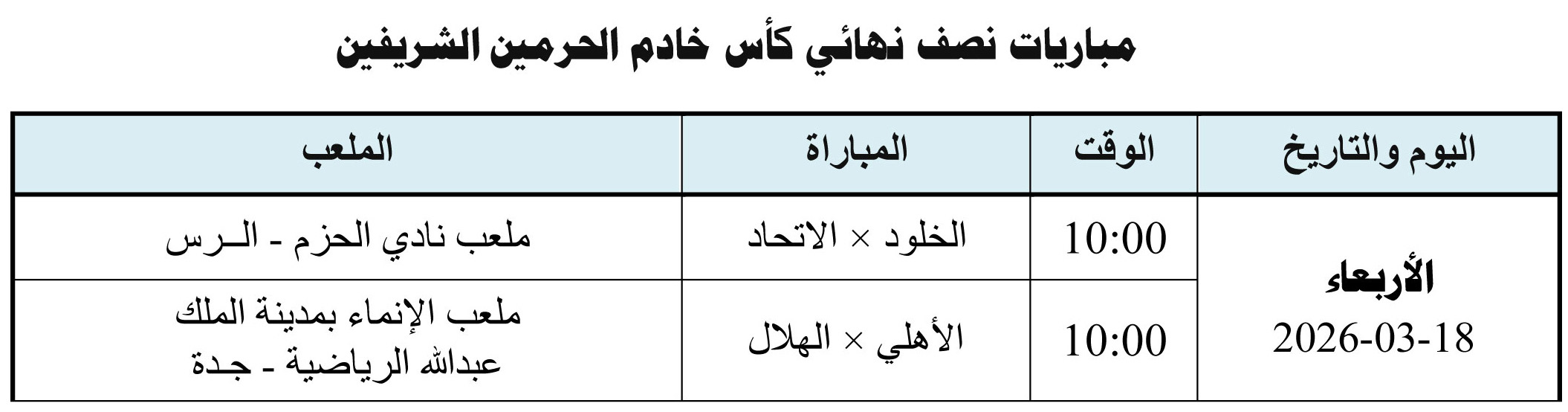 قبل فترة التوقف التي تصادف أيام الفيفا ينتظر أن تكون الأمور غاية في الإثارة بإقامة لقاءات دور الأربعة في مسابقة كأس خادم الحرمين الشريفين لكرة القدم مساء اليوم الأربعاء، ففي جدة يلتقي الأهلي مع الهلال في الكلاسيكو السعودي المثير، فيما سيحل الاتحاد الذي يعاني الأمرين ضيفاً على الخلود في الرس في مهمة مزدوجة لتحقيق بطاقة التأهل.