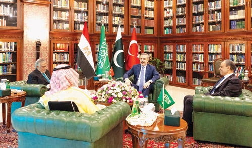 وقد شارك سمو وزير الخارجية أمس في الاجتماع الوزاري الرباعي الذي عقد في العاصمة الباكستانية إسلام آباد، بمشاركة معالي نائب رئيس الوزراء وزير خارجية جمهورية باكستان الإسلامية محمد إسحاق دار، ومعالي وزير الخارجية والتعاون الدولي والمصريين بالخارج بجمهورية مصر العربية الدكتور بدر عبدالعاطي، ومعالي وزير خارجية جمهورية تركيا هاكان فيدان.
