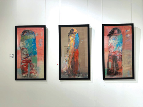 تبدأ الرحلة في أروقة المعرض مع إبراهيم بريمو حيث تنبثق الأشكال من عتمة كثيفة كأطياف تتلمس طريقها نحو الضوء، في محاولة لاستحضار أثر الجسد العالق في الذاكرة. وبذات الجرأة في التعبير يقدّم إدوارد شهدا جسداً منفتحاً على اللون، تتفكك فيه الحدود بين البراءة والغرابة، وكأن اللوحة مساحة للبوح غير المشروط.