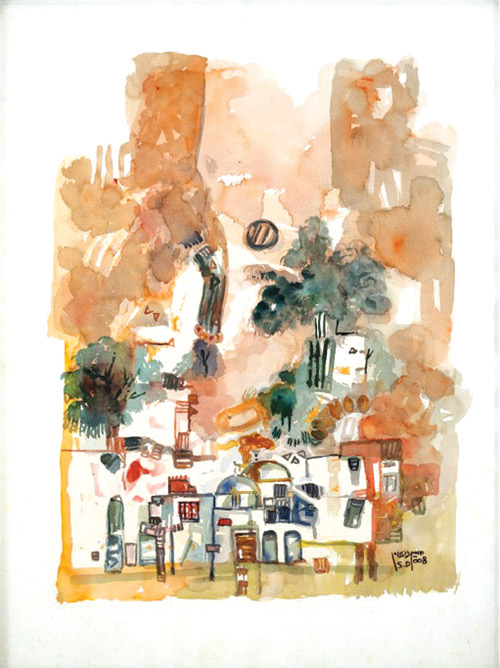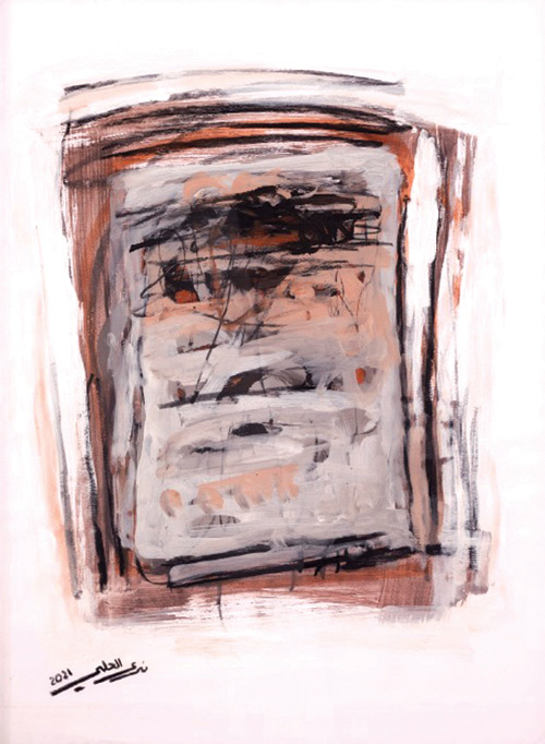 أما سمير الدهام فينقلنا إلى عالمٍ أكثر هدوءًا، حيث تتشكّل المدن من ذاكرةٍ مائية شفافة، والورق يتحول لديه إلى مساحة للحنين أكثر منها للتوثيق. وفي أعمال طارق البطاحي، نواجه جسداً آخر، أكثر التصاقاً بالأرض وارتباطاً بالحركة، حيث تنساب الخطوط بحرية تمنح العمل طاقة حيوية تشي بالفعل المستمر. ويأتي عبدالله مراد ليقدّم تجربة تعتمد على الوسائط المختلطة، حيث الورق جزء من البناء المادي للأثر، بينما يقدّم علي الصفّار رؤية جمالية تستلهم الزخرفة العربية بروح معاصرة، يتوازن فيها الإيقاع الهندسي مع سحر اللون.