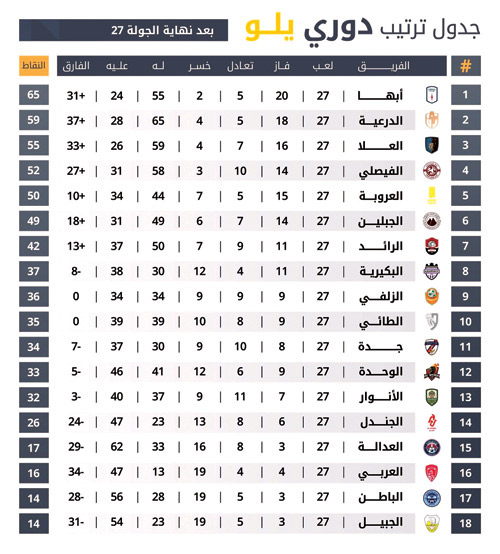 أما العلا، فقدم واحدة من أبرز نتائج الجولة بعدما أمطر شباك العدالة برباعية مقابل هدف (4-1)، ليرفع رصيده إلى 55 نقطة في المركز الثالث، معززًا حظوظه بقوة في المنافسة على مراكز الصعود.