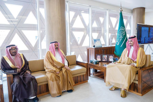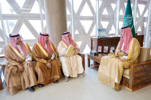 كما استقبل سمو محافظ الدرعية في مكتبه بالمحافظة أمس وفدًا من أسرة آل طالب أهالي العمارية التابعة لمحافظة الدرعية يتقدمهم سعود بن عبدالله بن طالب الذين قدموا للسلام على سموه.