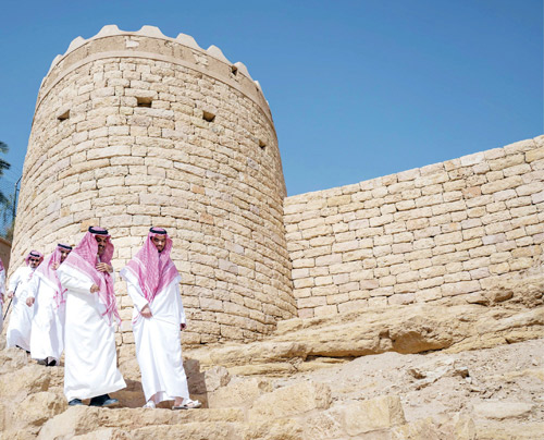 واستهل سموه الجولة بزيارة حي الطريف التاريخي، المسجل في قائمة التراث العالمي لدى اليونسكو، حيث اطّلع على معالمه المعمارية التي تجسد تاريخ الدولة السعودية الأولى، ومن ضمنها قصر سلوى وعدد من القصور التاريخية في الحي الملكي، التي تعكس في تصاميمها الطراز النجدي الأصيل، مؤكدًا أهمية الحفاظ على هذا الإرث الوطني وتعزيزه للأجيال القادمة.