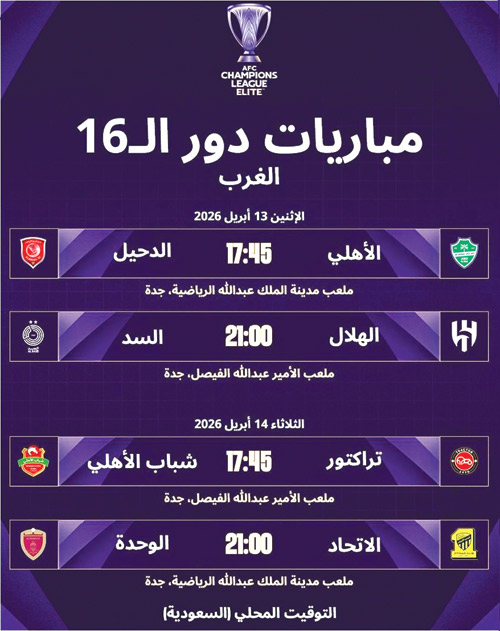 اليوم الاثنين، ستنطلق مباريات دور الستة عشر من البطولة لفرق غرب القارة التي تستضيفها مدينة جدة للعام الثاني على التوالي، وسيحمل الأهلي والهلال لواء الدفاع عن اللقب هذا اليوم بمواجهتين سيلتقي فيها الأهلي مع الدحيل القطري فيما سيصطدم الهلال بالسد القطري في قمة مواجهات هذا الدور.