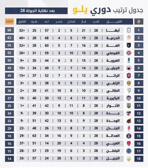 تحمل مباريات هذه الجولة أهمية كبير مع اقتراب الحسم، حيث يتصدر أبها جدول الترتيب برصيد 68 نقطة، ويقترب من العودة إلى دوري روشن، بينما تشتد المنافسة خلفه بين عدة فرق، أبرزها الدرعية والعلا والفيصلي، في سباق محتدم على بطاقات الصعود.