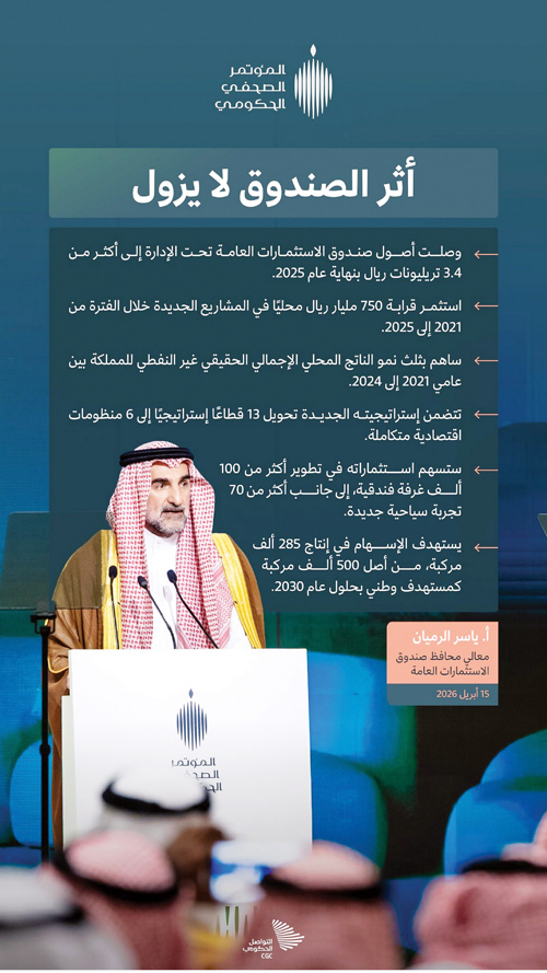 جاء ذلك خلال المؤتمر الصحفي الحكومي الذي عقده مركز التواصل الحكومي أمس، بمناسبة اعتماد مجلس إدارة الصندوق برئاسة صاحب السمو الملكي الأمير محمد بن سلمان بن عبدالعزيز آل سعود ولي العهد رئيس مجلس الوزراء رئيس مجلس إدارة صندوق الاستثمارات العامة، -حفظه الله-، لإستراتيجية الصندوق للأعوام 2026-2030م، متناولًا ما تحظى به المملكة كمركز مالي قوي، وموقع إستراتيجي متميز، مع بنية تحتية متقدمة، وسيولة مرتبطة بالأسواق العالمية، تعزز قدرتها على جذب الاستثمارات ورؤوس الأموال.