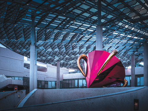 حين تتوجه إلى الحي الدبلوماسي، يستقبلك جيف كونز بعمله «الماسة « ليعيد تعريف الانعكاس واللون وسط هدوء الحي وقوة حضوره. وبجوارها تتألق «مرآة السماء « لأنيش كابور تلك المرآة التي لا تعكس وجوه المارة بقدر ما تعكس سماء الرياض الصافية، وتجذب زرقة الفضاء لتسكن بين جنبات الأرض. هنا، يشعر الزائر أن الرياض لم تعد مدينة محلية فحسب، بل هي نقطة التقاء لمدارس فنية تمتد من نيويورك إلى طوكيو، ومن باريس إلى قلب نجد.