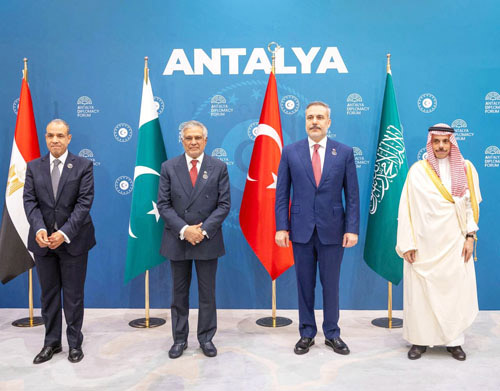 شارك صاحب السمو الأمير فيصل بن فرحان بن عبدالله وزير الخارجية، في الاجتماع الوزاري الرباعي، الذي عقد في مدينة أنطاليا بالجمهورية التركية، بمشاركة معالي نائب رئيس الوزراء وزير خارجية جمهورية باكستان الإسلامية محمد إسحاق دار، ومعالي وزير الخارجية والتعاون الدولي والمصريين بالخارج بجمهورية مصر العربية الدكتور بدر عبدالعاطي، ومعالي وزير خارجية جمهورية تركيا هاكان فيدان.