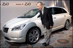 - رئيس تويوتا اليابانية يعلن عن إنتاج الشركة الجديد (مارك إكس زيو) خلال مؤتمر صحفي عقد في طوكيو. ومحرك (مارك) يأتي بسعتي 2.4 لتر و3.5 لتراً. - (ا.ف.ب)] |