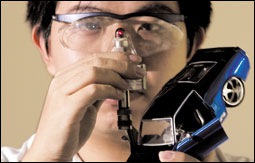 -مختص يفحص سيارة من ألعاب الأطفال الصينية للتأكد من عدم وجود اي مخاطر صحية تؤثر على الاطفال -(رويترز)] |