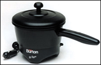 * قدر كهربائي يحصل على طاقته من أي مأخذ في السيارة (12 فولت) لطبخ الوجبات المفضلة من الحساء أوالحبوب أوحتى الذرة المشوية، وهومصنوع من الألمنيوم وبحجم لتر واحد ويلائم من يقومون بسفرات طويلة على الطرق الخارجية.