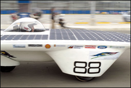 - مانيلا - الفلبين : سيارة تعمل بالطاقة الشمسية صممها طلاب جامعة ديلا سال الفلبينية. وستشارك في سباق أستراليا للطاقة الشمسية في أكتوبر القادم (ا.ف.ب). |