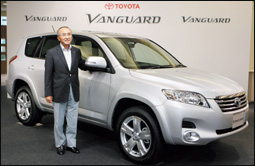 -طوكيو، اليابان: رئيس شركة تويوتا يقدم للجمهور لاول مرة سيارة "فانجارد" الجديدة المتعددة الأغراض في معرض للشركة بطوكيو. (ا.ف.ب). |