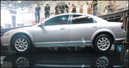 - موسكو، روسيا: سيارة (سايبر سيدان) نتجتها شركة (جاز) الروسية أثناء عرضها في معرض للسيارات في موسكو. (رويترز) |