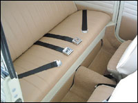 وعرض الحزام لأول مرة في السيارات الأمريكية عام 1947م، وفي عام 1956م وفرت شركة فورد الحزام في السيارات التي ستباع داخل أمريكا، وفي عام 1964م أصبح الحزام صفة قياسية للسيارات الأمريكية. وفي عام 1966م أصبح الحزام الخلفي قياسياً، وفي عام 1967م أصبح الحزام الأمامي إلزامياً، وفي عام 1968م أصبح حزام الكتف إلزامياً.