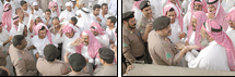 تجار حلقة الأغنام يمنعون رجال الأمن من وضع حواجز في الطريق المؤدي إلى حلقة الغنم بجدة.