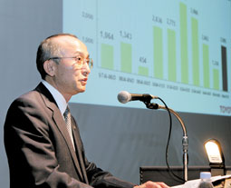 : رئيس الشركة اليابانية تويوتا يعلن نتائج السنة المالية التي أبرزت تفوق أرباح تويوتا على أرباح شركات السيارات اليابانية الأخرى، وذلك للعام الثاني على التوالي. وصلت أرباح الشركة إلى أكثر من تريليوني ين ياباني.