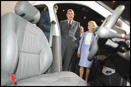الرئيس الفرنسي جاك شيراك كان من ضمن زوار المعرض، وفي الصورة يشاهد إحدى سيارات شركة سيتروين الفرنسية.........التفاصيل |