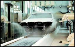 بعد إعداد البنية الهيكلية والألواح الخارجية، وقبل مراحل الطلاء المتلاحقة، يخضع الهيكل لعملية غسيل شاملة مع تغطيس الهيكل وفتله في السوائل المنظفة لإزالة الرواسب، قبل مراحل الإعداد التالية بطبقة فوسفاتية أساسية تحت الطلاء الذي تكسوه أخيرا طبقة التلميع والوقاية برش بودرة جافة بواسطة رذاذات تطلق البودرة بعد مرورها في قطب كهربائي يشحنها إلكتروستاتيا بحيث تلتصق البودرة على معدن الهيكل المؤرض (earthed)، من هناك يدخل الهيكل إلى غرفة ساخنة تذيب البودرة البيضاء بتجانس تام، لتصبح شفافة وتلتحم تماما مع الطلاء. وتتميز تقنية البودرة الجافة باستغنائها تماما عن السوائل المذيبة التقليدية وعن الملوثات وعن هدر أي رواسب، وفي مراحل طلائه المتلاحقة، يتلقى هيكل الفئة السابقة 2 ،2 كلغ من الفوسفات في الطبقة الأولى، ثم 9 ،7 كلغ من الطلاء الأولي، و2 ،3 كلغ من المعجون، ثم 7 ،3 كلغ من الطلاء الذي يثبت أخيرا تحت 6 ،1 كلغ من الطبقة الشفافة العليا والأخيرة، ويتاح 30 خيارا من الألوان الأساسية و200 خيار من الألوان الإضافية.