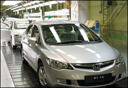 تنوي شركة هوندا اليابانية زيادة حجم مبيعاتها بالهند بنسبة الثلث لتصل إلى 90 ألف سيارة بالعام. مع توقعات بزيادة حجم المبيعات إلى 160 ألف سيارة بحلول عام 2010 الصورة من مصنع هوندا في الهند. رويترز