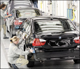 في الصورة خط إنتاج سيارات بي إم دبليو ، إذ تنوي الشركة إلغاء أكثر من 8 آلاف وظيفة حول العالم سعياً لزيادة أرباحها، ويذكر أن الشركة أنهت العام الماضي عقود جميع الموظفين المؤقتين وغير المثبتين رسمياً. أ.ف.ب