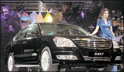 عرضت في سيئول للمرة الأولى السيارة SM7 سيدان المجددة بسعة محرك 3500 سي سي. وهي إنتاج مشترك بين رينو الفرنسية وسامسونج موتورز. (أ.ف.ب)