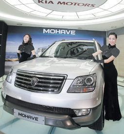 كشف الستار في العاصمة الكورية سيئول عن السيارة موهاف الجديدة بمحرك 6 سلندرات وسعة 3000 سي سي وهي نتيجة تعاون مشترك بين شركتي هيونداي وكيا موتورز. (أ.ف.ب)