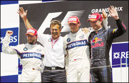 الان بولدوين- لندن - رويترزأكد فريق بي.ام.دبليو ساوبر أن بطولة العالم لسباقات فورمولا1 هذا العام ستشهد منافسة ثلاثية بعد انتصاره في سباق جائزة كندا الكبرى وبعد احتكار فريقي فيراري ومكلارين الفوز في 24 سباقاً متتالياً لم يفرط بي.ام.دبليو الذي يتخذ من سويسرا مقراً له في الفرصة التي سنحت له في مونتريال. ليحتل سائقاه المركزين الأول والثاني ويبرهن أنه ليس