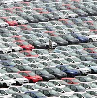 تجمع لسيارات فورد المنتجة في إحدى مقاطعات الصين بالتعاون مع الشركة الأمريكية. يذكر أن نمو الناتج المحلي بالصين خلال الربع الأول من هذا العام قد تراجع إلى 10.6% بعد أن وصل إلى 11.2 خلال الربع الأخير من 2007- رويترز