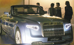 قررت الشركة المصنعة للسيارة الفاخرة أستون مارتن إلغاء 600 وظيفة نتيجة التأثر بالأزمة المالية العالمية. وفي الصورة أحدث موديل من أستون مارتن في أحد معارض لندن التي تشهد انخفاضاً في مبيعات السيارات.