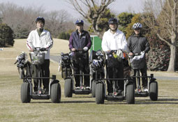 لاعبو جولف يمارسون اللعبة على مركبات ذات عجلتين في دورة تقام بمدينة توريدو شمال شرق العاصمة اليابانية طوكيو. ويمكن للاعبي الجولف الحاصلين على ترخيص قيادة السيارات وممارسة اللعبة بعد دفع رسوم تأجير والتدريب على استخدام المركبة في اللعبة لفترة ساعة