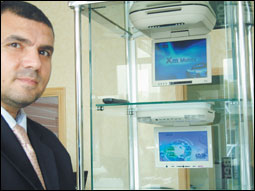 استعداد للسفر، وبالتالي زادت طلبات العملاء على تركيب الشاشات. وتركيب الشاشات يطلبه في الأغلب أصحاب السيارات العائلية. فإذا كانت السيارة من الوكالة نركب الشاشة في الوكالة، أو يمكن للعميل زيارتنا ونحن نقوم بتركيب الشاشة التي يريد في المعرض عندنا من قبل الفنيين ويعطى ضمان على الشاشة المركبة لمدة سنة. وأسعارنا رخيصة، فالعميل يدفع 2700 أو 2500 لشاشة حجمها 9.5 مقارنة بالسيارات التي تأتي من الوكالة مزودة بشاشات الدي في دي ،فأسعارها لا تقل عن 6000 آلاف ريال كما أن حجمها صغير (6) بوصات، إضافة إلى المزايا الأخرى لشاشاتنا مثل دوران الشاشة يميناً ويساراً 180 درجة عمودي و160 درجة دائري. وبالنسبة للأسعار فيتفاوت السعر المتوسط من 2000 إلى 3500، والصناعة تختلف فهناك الشاشات الكورية واليابانية والصينية، والأفضل اليابانية، وهناك أيضا الشاشات الطبية التي لا تضر العينين. ولشاشات الدي في دي أنواع عديدة فمنها الشاشة المعلقة بالسقف. والشاشات الخلفية على المقاعد في الخلف ، وكل شاشة بقيمة 1200 ريال كما أنها تركب بدون حفر لأننا نستبدل تكاية الرأس الأصلية ونضع بدلا منها تكايات مزودة بشاشات،حتى لو أراد العميل بيع السيارة بعد ذلك يبيعها بالتكايات الأصلية. كما أن أحجامها تختلف تبعا لاختلاف الطلب ، فهناك مقاس (8 - 5،8 - 5،9 - 5،10).