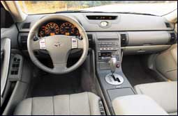 مع عزم دوران 352 نيوتون متر/4800 د.د. وقد يأسف محبو القيادة الرياضية الحادة لغياب خيار علبة التروس اليدوية ذات النسب الأمامية الست. وهي المتاحة اختياريا مع جي 35 كوبيه. إذ يجهز سيدان جي 35 بعلبة أوتوماتيكية بخمس نسب امامية قابلة للغيار آليا أو شبه يدويا علما بأن العلبة المذكورة متاحة أيضا مع الكوبيه.
