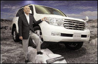 - رئيس شركة تويوتا اليابانية كاتسواكي كاتانابي يقدم أحدث إنتاج من سيارات لاند كروزر.. السيارة الجديدة مزودة بمحرك ذي سعة 4.7 لتر بثمانية صمامات، إضافة إلى العديد من المواصفات التقنية والتقنيات المتقدمة (أ.ف.ب) ] |
