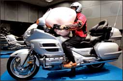 أعلنت شركة هوندا للسيارات وهي أكبر منتج للدراجات النارية في العالم وثالث أكبر منتج للسيارات في اليابان، أنها ستقدِّم أول نظام للوسائد الهوائية للدراجات النارية في خريف 2006 وستزوِّد الدراجة النارية الجديدة (جولد وينج) بنظام الوسادة الهوائية، الذي يساعد على خفض نسبة الضرر والإصابات، وهو مكوّن من كيس الهواء ومجس الاصطدام ووحدة كمبيوتر (إي.سي.يو).