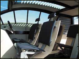 جداً وتتخللها فواصل متتابعة تشبه مروحة التهوية اليدوية اليابانية، وتفتح أجزاء الزجاج بالطريقة المروحية ذاتها، ويمكن طي معظم محتويات المقصورة المصممة أساسا لتسع أربعة ركاب وتصلح لاستخدامات عائلة صغيرة أو لاستخدامها كمكتب نقّال في بحر الأسبوع مثلاً فماذا يمنع استغلاله في الوظائف التي تتطلب الكثير من التنقلات لإجراء الاتصالات من السيارة والمكتب والاستراحة ما بين المواعيد. وتمتاز هذه السيارة بسهولة ومرونة في عملية طي المقاعد أو تحويل وجهتها أو سحبها حتى من السيارة منفردة أو مزدوجة ويمكن طي المقاعد الأربعة كلها بحركة واحدة، وبها أرضية قابلة للتسطيح تماماً ويمكن حجب