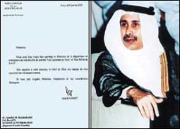 في رسالة من فخامة الرئيس «شيراك» رئيس دولة فرنسا الى الأديب الشاعر عبدالله محمد باشراحيل أعرب فيها عن امتنانه وشكره للشاعر على ديوانيه قلائد الشمس وقناديل الريح المترجمة الى اللغة الفرنسية ........