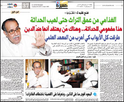 حظيت صفحة (مسيرة) التي تصدر كل ثلاثاء ضمن الصفحات الثقافية اليومية باهتمام كبير من الأوساط المتابعة، وقد كان حوارها الأول مع الأستاذ الدكتور عبدالله الغذامي (الذي نشر جزؤه الأول يوم الثلاثاء الماضي ويستكمل غداً جزؤه الثاني) ذا أصداء ممتدة بعرض الشارع الثقافي السعودي والعربي حيث أثار أبو غادة - كعادته - كثيراً من الإشكالات والاستفهامات حول قضية الحداثة ودوره فيها منذ كان طالباً