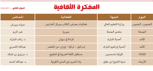 تواصلاً مع مقترح الثقافية في العدد الماضي.. حول ما يتطلع إليه مريدو الشيخ محمد العبودي في أن يفتتح منتدىً ثابتًا خاصًا به في ليلة أو ليلتين؛ ليكون كما المجالس المنزلية ذات الأثر الكبير في تعريف الشباب على رمز مهم من رموزهم والاستضاءة بما خطه في حياته سعيًا ووعيًا وتجارب أعلن الشيخ العبودي حفظه الله مغرب يوم الإثنين من كل أسبوع لقاء منزلياً خاصاً بمحبيه وتلامذته..