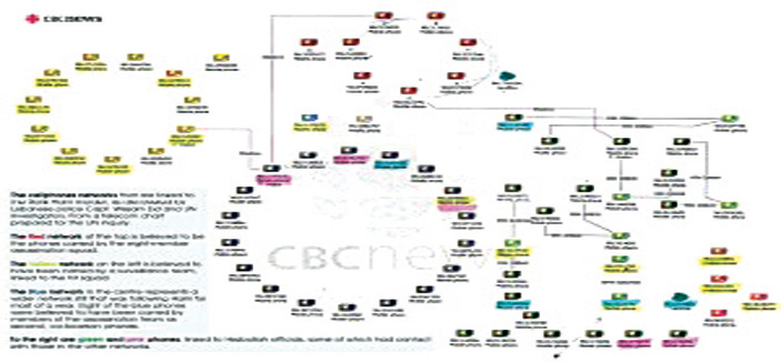 • الأدلة التي جمعتها الشرطة اللبنانية، وبعد ذلك بكثير، لجنة الأمم المتحدة، تشير بصورة مؤكدة إلى أن القتلة هم من «حزب الله»، وهي المليشيا التي ترعاها سوريا وإيران.. «سي بي سي نيوز»، حصلت على وثائق تحتوي على أدلة الاتصالات الخليوية والهواتف الأخرى وغيرها التي تُعتبر جوهر القضية.