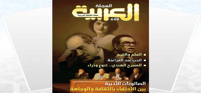 استقبل قراء المجلة العربية عددها الجديد (449) عبر نافذة (الصالونات الأدبية.. بين الاحتفاء بالثقافة والوجاهة) التي تصدرت قضية العدد بمشاركات عربية منوعة شملت كل من السعودية ومصر والمغرب واليمن وسوريا والأردن والجزائر وعمان..