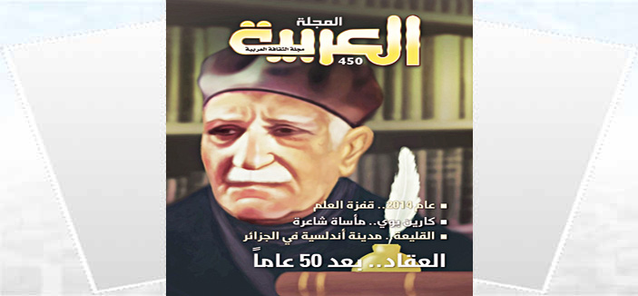 أطلت المجلة العربية في عددها الجديد (450).. محتفية بالعقد الخامس على رحيل الأديب الكبير عباس محمود العقاد عبر ملف تجاوز 60 صفحة بمشاركات عربية شملت السعودية ومصر والمغرب واليمن وسوريا والأردن والجزائر وعمان .. مثل وديع فلسطين وعبدالحميد مدكور وأبو همام عبداللطيف عبدالحليم وأحمد فؤاد باشا ومصطفى لبيب عبدالغني ومحمد مريني وفريد أمعضشو وعبدالعزيز محمد الفيصل وحسن فهد الهويمل وإبراهيم المليفي وأحمد عبدالملك وأحمد الهلال.