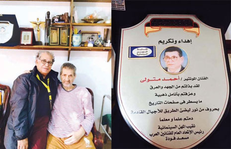 عندما حل موعد التكريم، تكريم صاحب الأنامل الذهبية، جاء أصدقاؤه من نقابة السينمائيين، جاء أبناء جيله، وأنزلوه من السلم إلى السيارة التي أخذته إلى مقر نقابة السينمائيين وساعدوه كي يتربع على عرش المونتاج ويتوجوه ملكاً للسينما في مصر ليعلنوا تكريمه وقد امتلأت الصالة بكل نجوم مصر يسلمون على «أحمد متولي» ويوقعون شهادة التكريم «أحمد متولي صاحب الأنامل الذهبية».