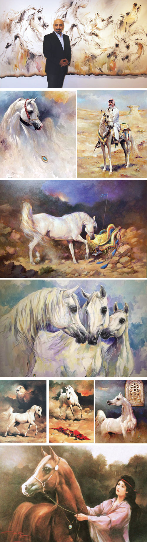 لاشك أن الخيل كانت ولا زالت مصدر إلهام للفنانين في مختلف دول العالم، منهم من أظهر جمالها في تناسق أجسادها، وقوة عضلاتها خصوصا الخيل العربية، ومنهم من سجل لحظات فوزها وحضورها المنافس في ميادين السباق، أو في السلم والحرب، وهناك من قدمها من جانب جمالي، من خلال الراس والعينان أو ما تتجمل به من إضافات (السرج) التي يحرص ملاكها على أن تظهر به في المناسبات.