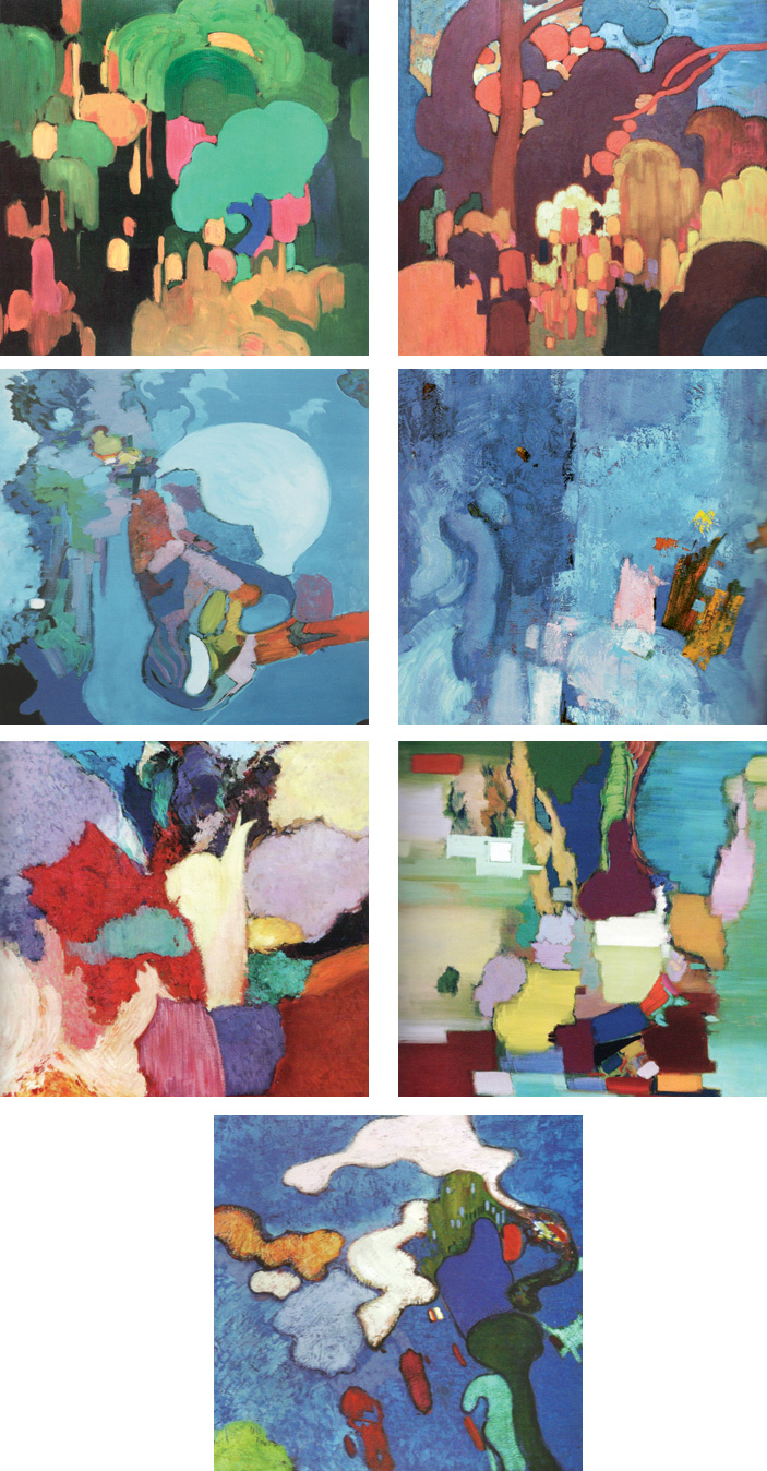 اللوحات تضج وتزدحم في فضاء اللوحات.. البعض أكثر إشراقاً، والأخرى يغلب عليها الألوان الرمادية أو القاتمة. سيمفونية تستولي على كل المساحات، أصبح فيها اللون الحاكم بأمره في اللوحة، يجمع ويوحد شتاته إلى أبعد مدى من «النضج» في ملامحها.