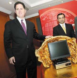 صورة تجمع بين السيد مايكل ديل (يسار) المدير التنفيذي لشركة ديل العالمية، والتي تعد واحدة من أكبر الشركات العالمية المصنعة لأجهزة الكمبيوتر، خلال تدشينهم لكمبيوتر (EC280) وهذا المنتج صمم خصيصاً من قبل الشركة لمستخدمي أجهزة الكمبيوتر بالصين. ويتميز هذا المنتج بعدة مميزات