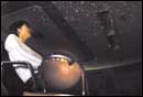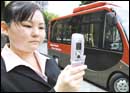 طالبة يابانية تستدعى بواسطة هاتفها النقال اتوبيس كهربائي متطور (خلفية الصورة) في جامعة واسيدا باليابان .
